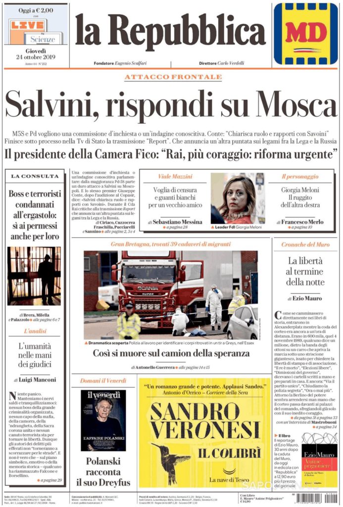 CASO MOSCOU : SALVINI, O LÍDER DA EXTREMA DIREITA, SAÍ DO SÉRIO Outubro 24, 2019Outubro 24, 2019 admin0 commentsUncategorized ” LA REPUBBLICA” ( ITÁLIA)