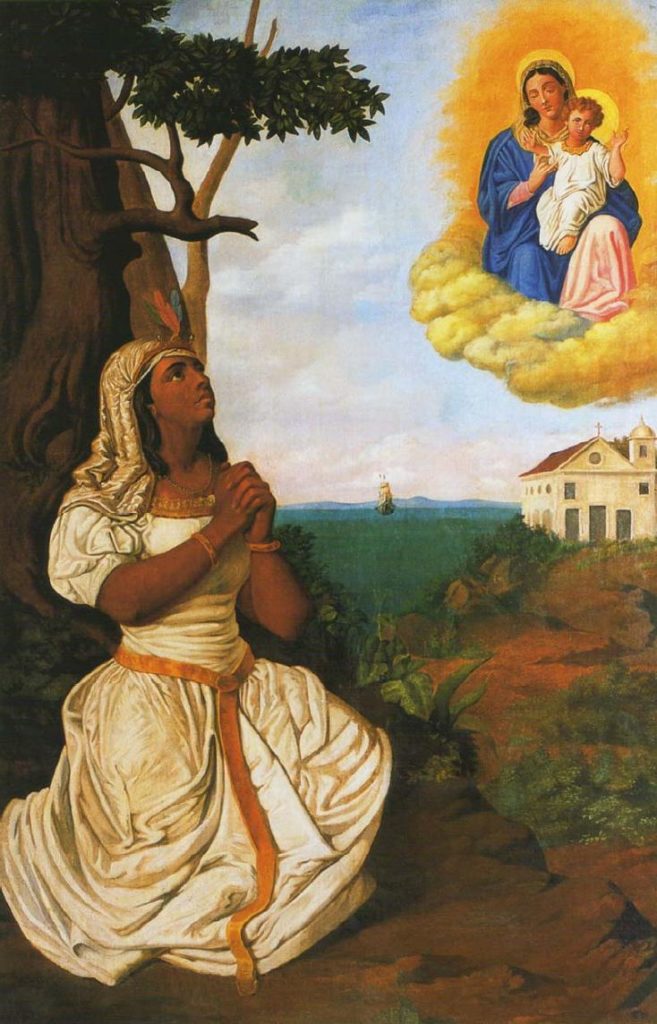 A indígena tupinambá passou a se chamar Catarina Álvares Paraguaçu desde a ida à França. Ilustra a coluna um retrato a óleo do século XIX, onde aparece recebendo a anunciação de Nossa Senhora com o Menino Jesus.