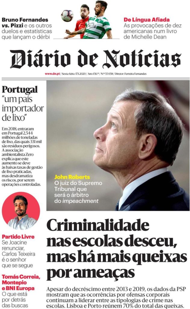 JOHN ROBERTS, O JUIZ DO SUPREMO, QUE TEM EM SUAS MÃOS O FUTURO DE TRUMP Janeiro 17, 2020 admin0 commentsUncategorized ” DIÁRIO DE NOTÍCIAS” ( PORTUGAL)