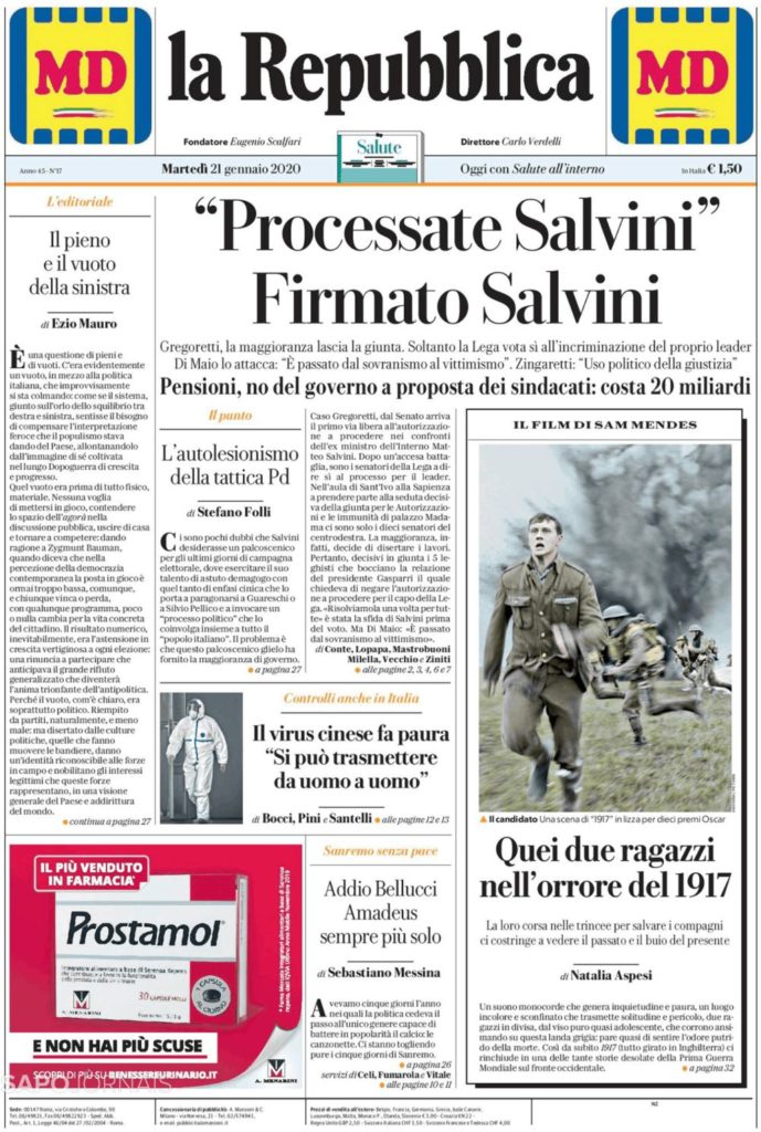 A JUSTIÇA ITALIANA PROCESSA O EXTREMISTA DE DIREITA SALVINI Janeiro 21, 2020Janeiro 21, 2020 admin0 commentsUncategorized “LA REPUBBLICA” ( ITÁLIA)