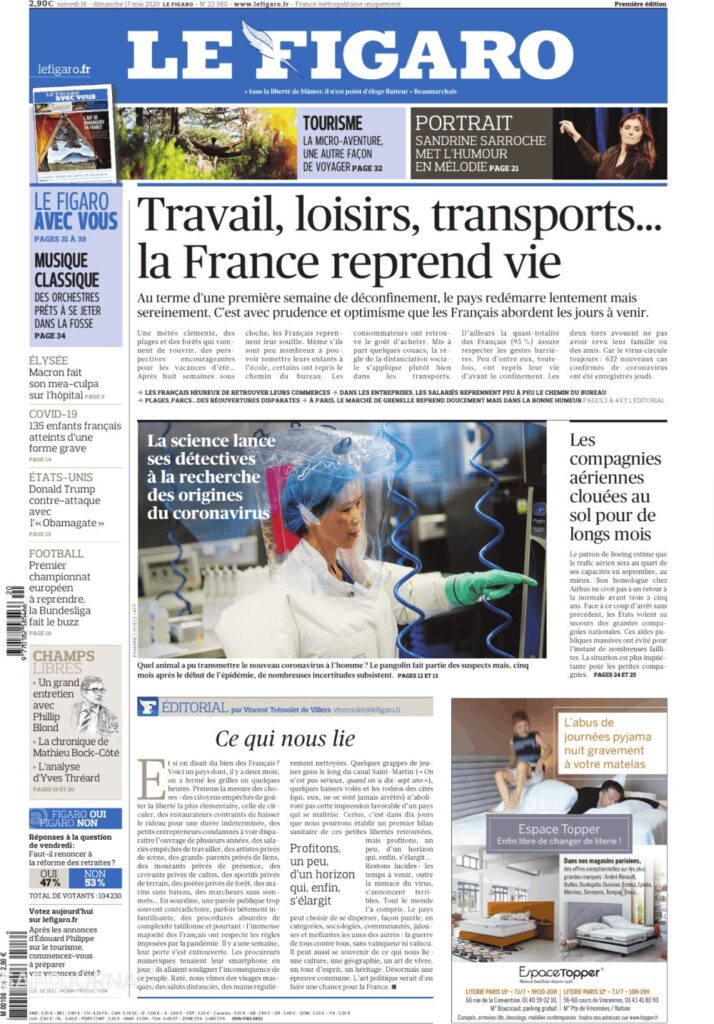 A FRANÇA REAPRENDE A VIVER: TRABALHO, HOBBIES, TRANSPORTES…. Maio 16, 2020 admin0 commentsUncategorized “LE FIGARO” ( FRANÇA)