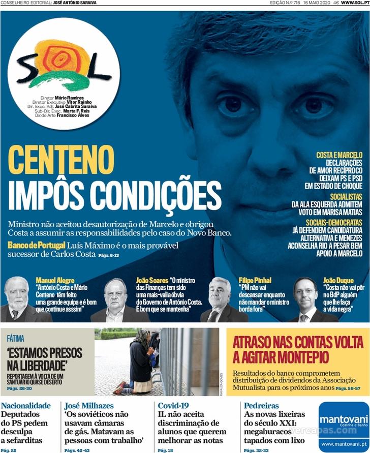 UM RAIO-X DAS QUESTÕES POLÍTICAS EM PORTUGAL Maio 16, 2020 admin0 commentsUncategorized “SEMANÁRIO SOL” ( PORTUGAL)