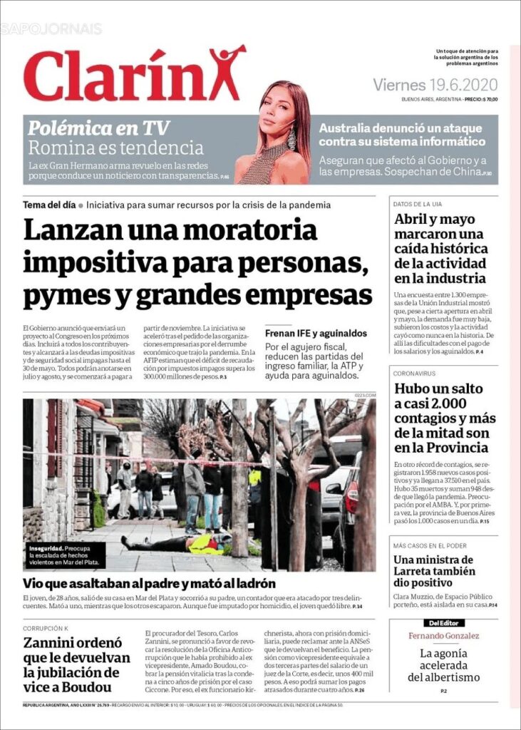 ABRIL E MAIO MARCARAM A QUEDA HISTÓRICA DA ATIVIDADE INDUSTRIAL NA ARGENTINA Junho 19, 2020 admin0 commentsUncategorized “CLARÍN” ( ARGENTINA)