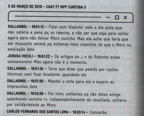 O comunicado acabou sendo produzido — com a consultoria de Vladimir. Dallagnol afirma que “ficou boa parte do começo, mas com base em seu olhar tiram 2 itens inteiros”.