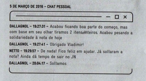 Quem aparece muito nos diálogos do Telegram é o repórter Vladimir Netto, do Jornal Nacional, responsável por vários “furos” que lhe foram passados pela República de Curitiba.