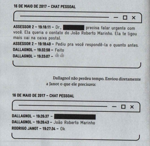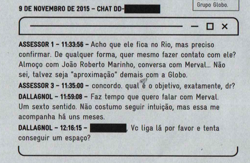 Dallagnol e João Roberto Marinho criaram uma proximidade daí em diante. Numa demonstração de poder e influência, DD passa a Janot o telefone de JRM.