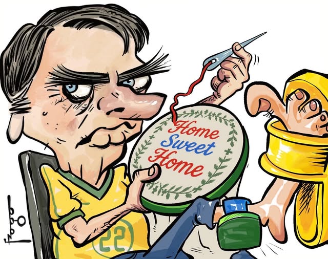 Pela declaração dos membros do clã Bolsonaro condicionando a suspensão das barreiras tarifárias à anistia a Jair Bolsonaro e demais acusados que ainda nem tiveram o julgamento concluído, para forçar o governo Lula a interferir no Judiciário, o relator do processo das ações golpistas, o ministro Alexandre de Moraes, determinou à Polícia Federal a instauração do inquérito 4.995/DF para investigar as ações de Eduardo Bolsonaro – devidamente bancadas nos EUA com a transferência de R$ 2 milhões, via Pix, confessada pelo pai. (Bolsonaro arrecadou R$ 17 milhões em 2024 com contribuições de apoiadores, via Pix, para “custear advogados”). A remessa foi considerada como uma interferência direta do clã Bolsonaro para atrapalhar o andamento da Ação Penal. Como o Judiciário – bem como o Legislativo – entraria em recesso sexta-feira, 18 de julho, o ministro Moraes determinou o uso de tornozeleira eletrônica por parte de Jair Messias Bolsonaro, para ser monitorado 24 horas, e outras medidas cautelares. Com o passaporte retido, Bolsonaro deve cumprir prisão domiciliar (ficar em casa das 18 horas até o amanhecer), está proibido de ter contato com o filho Eduardo, de acessar mídias sociais e de se aproximar de embaixadas estrangeiras.