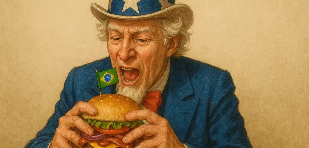 Donald Trump anunciou tarifas de 50% sobre produtos brasileiros, uma medida que promete afetar três produtos absolutamente estratégicos para a segurança alimentar dos americanos: café, suco de laranja e carne para hambúrguer. Enquanto já abordamos a questão do café em análises anteriores e voltaremos a falar sobre ele em breve, e o suco de laranja será tema de um artigo específico, este texto foca na carne para hambúrguer – a carne bovina desossada congelada que o Brasil fornece em larga escala para os Estados Unidos.