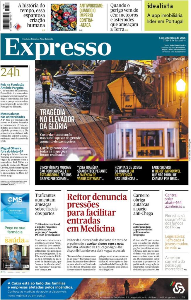 TRAGÉDIA NO ELEVADOR DA GLÓRIA Setembro 5, 2025 admin0 commentsUncategorized ” SEMANÁRIO” E ” REVISTA E” ( PORTUGAL)