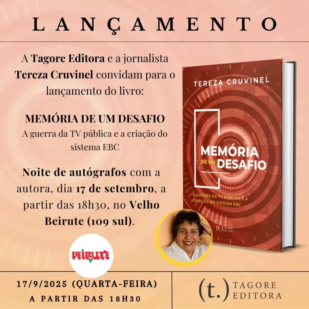 Levei 14 anos para escrever sobre o processo de criação da EBC e da TV Brasil, experiência importante para mim, mas principalmente para a história da comunicação pública no Brasil. É desta experiência que falo no livro que lançarei hoje a partir das 18hs30min no velho Beirute da 109 Sul: Memória de um desafio – A guerra da TV pública e a criação do sistema EBC. Ele sai pela Tagore Editorial com 208 páginas que falam daquele processo que foi ousado, sofrido e inédito.