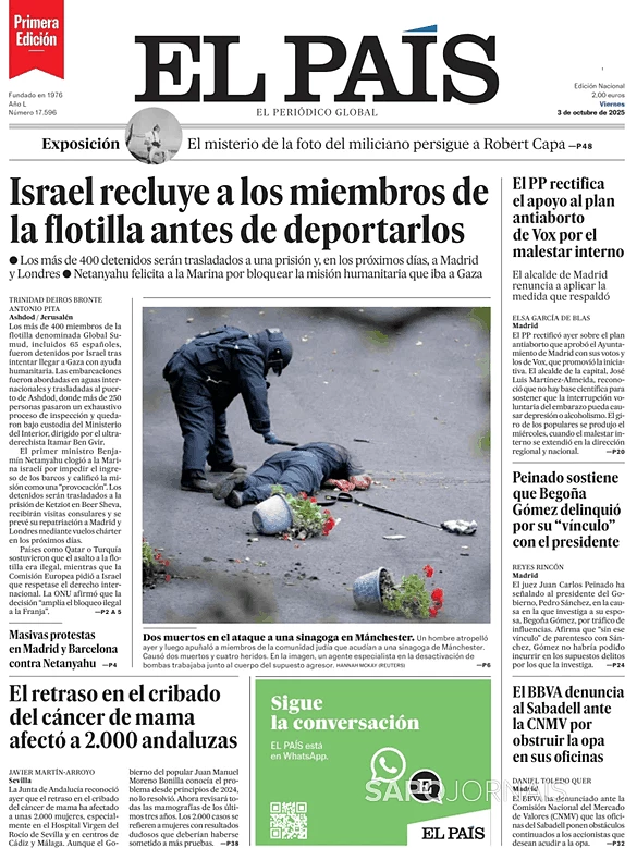 ISRAEL RECOLHE OS MEMBROS DA FLOTILHA ANTES DE DEPORTÁ-LOS Outubro 3, 2025Outubro 3, 2025 admin0 commentsUncategorized JORNAL GLOBAL INDEPENDENTE DA ESPANHA