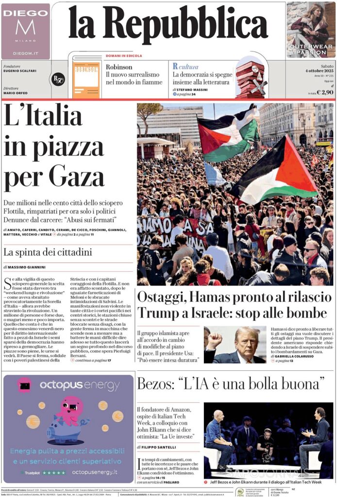 A ITÁLIA NAS RUAS POR GAZA Outubro 4, 2025 admin0 commentsUncategorized JORNAL INDEPENDENTE DA ITÁLIA