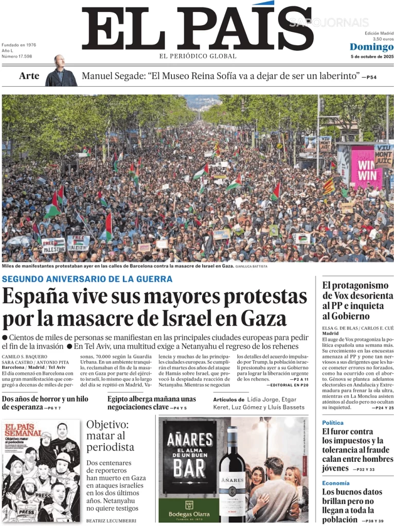 ESPANHA REGISTRA SEUS MAIORES PROTESTOS PELOS MASSACRES DE ISRAEL EM GAZA Outubro 5, 2025 admin0 commentsUncategorized JORNAL GLOBAL INDEPENDENTE DA ESPANHA