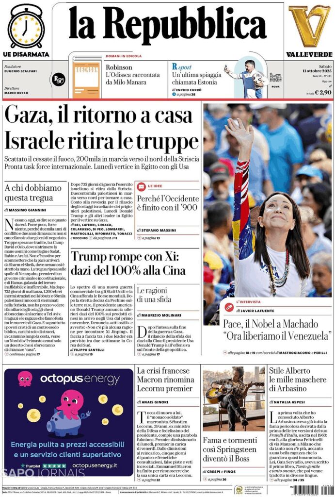 GAZA, O RETORNO A CASA E ISRAEL RETIRA A TROPA Outubro 11, 2025 admin0 commentsUncategorized JORNAL INDEPENDENTE DA ITÁLIA