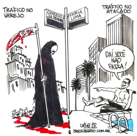 Não é pura especulação dizer da identidade do bolsonarismo com Donald Trump na operação. O governo de Cláudio Castro enviou relatório a Donald Trump classificando o Comando Vermelho como grupo de atuação internacional com características de grupo terrorista, tudo de acordo com o pensamento trompista, cuja ação contra barcos no mar do Caribe mostra a disposição do império em decadência de buscar argumentos para reforçar a agressão à América Latina – cerco a Venezuela, ameaças à Colômbia, sobretaxas ao Brasil.