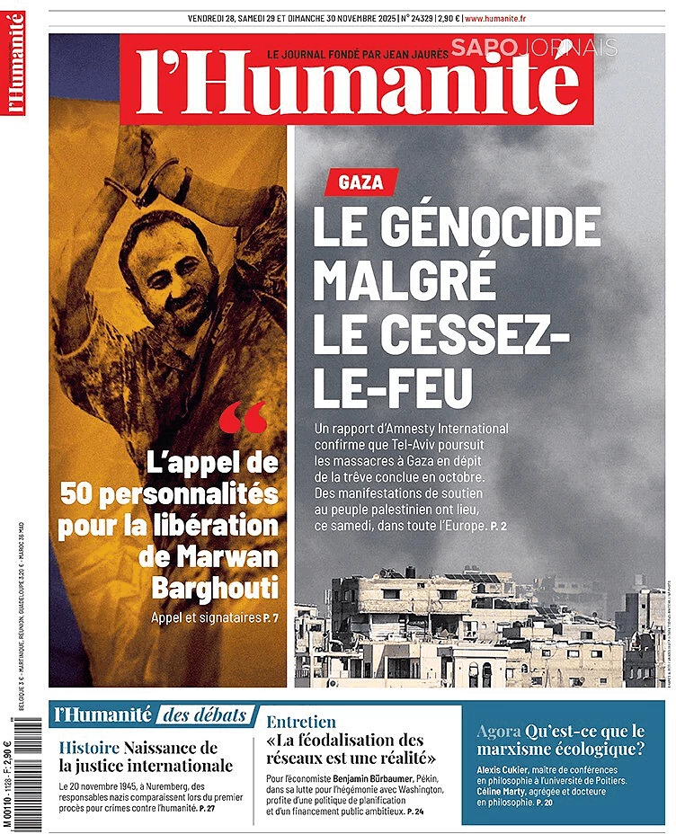 GAZA: O GENOCÍDIO APESAR DO CESSAR -FOGO Novembro 28, 2025 admin0 commentsUncategorized JORNAL DA ESQUERDA DA FRANÇA