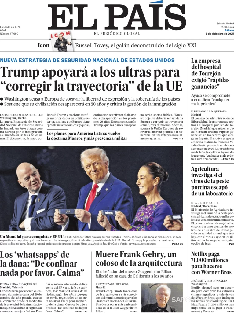 TRUMP APOIARÁ OS ULTRAS PARA ” CORRIGIR A TRAJETÓRIA” DA UNIÃO EUROPÉIA Dezembro 7, 2025 admin0 commentsUncategorized JORNAL GLOBAL INDEPENDENTE DA ESPANHA