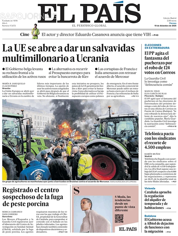 A UNIÃO EUROPÉIA DECIDE DAR UMA SOBREVIVÊNCIA MULTIMILIONÁRIA A UCRÂNIA Dezembro 19, 2025 admin0 commentsUncategorized JORNAL GLOBAL INDEPENDENTE DA ESPANHA