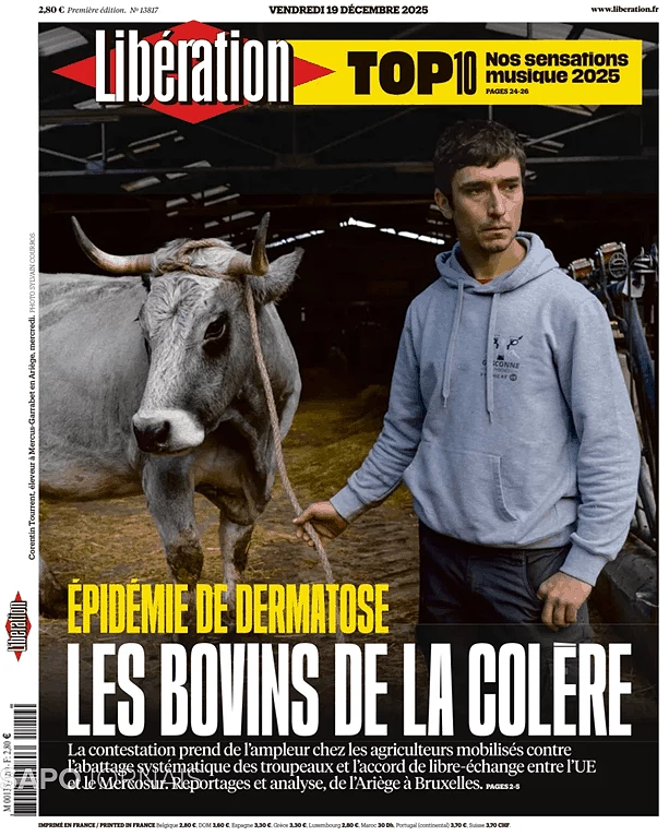 EPIDEMIA DE DERMATOSE: OS BOVINOS COM CÓLERA Dezembro 19, 2025 admin0 commentsUncategorized JORNAL DA ESQUERDA DA FRANÇA