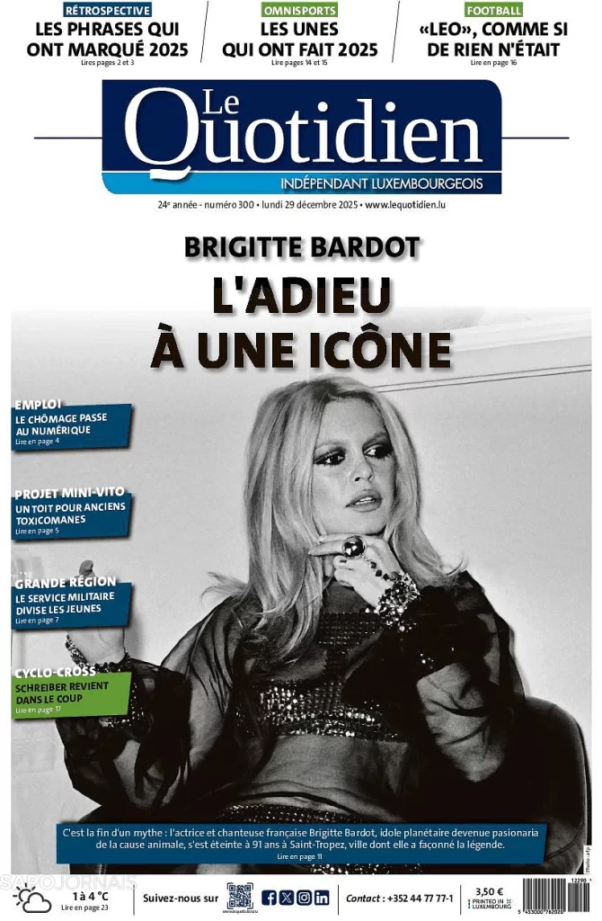 BRIGITTE BARDOT,O ADEUS À UM ÍCONE Dezembro 29, 2025Dezembro 29, 2025 admin0 commentsUncategorized JORNAL INDEPENDENTE DE LUXEMBURGO