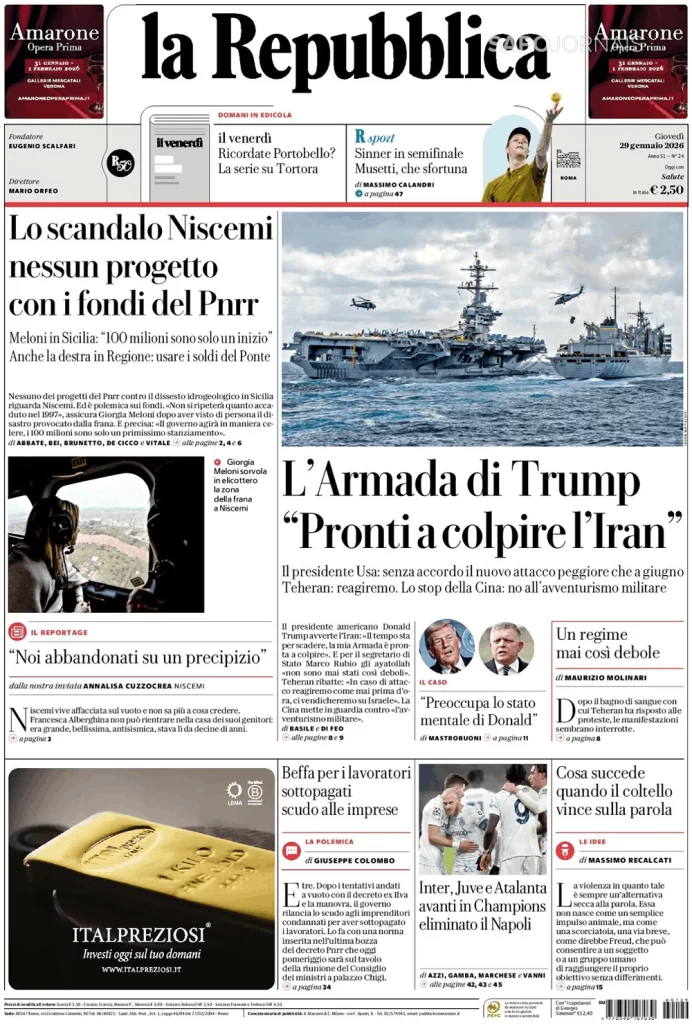 A ARMADA DE TRUMP” PRONTA A ATACAR O IRÔ Janeiro 29, 2026 admin0 commentsUncategorized JORNAL INDEPENDENTE DA ITÁLIA