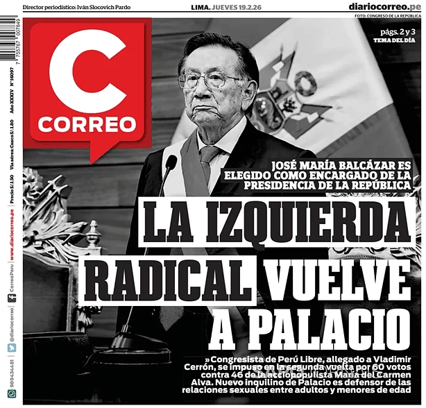 A ESQUERDA RADICAL VOLTA AO PODER: JOSÉ MARÍA BALCÁZAR ELEITO PRESIDENTE DA REPÚBLICA Fevereiro 19, 2026 admin0 commentsUncategorized JORNAL DO PERU