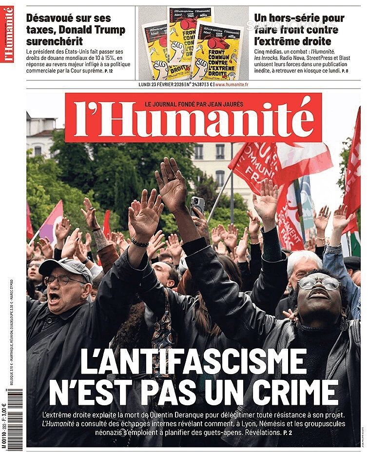 O ANTIFASCISMO NÃO É CRIME Fevereiro 23, 2026 admin0 commentsUncategorized JORNAL DA ESQUERDA DA FRANÇA