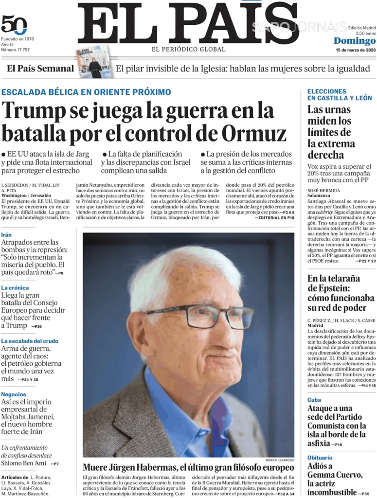 TRUMP JOGA A GUERRA NA BATALHA PELO CONTROLE DE ORMUZ Março 15, 2026 admin0 commentsUncategorized JORNAL GLOBAL INDEPENDENTE DA ESPANHA|