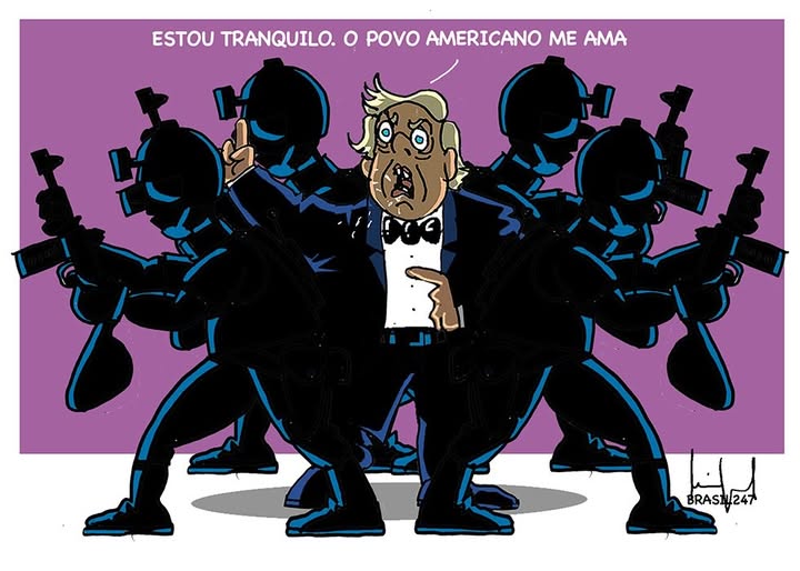 Um jornalismo de corporações de mídia americanas e de outros países que também continua, por falta de coragem, manchando as próprias mãos com o sangue de crianças, mulheres e idosos assassinados pelos foguetes de Trump e por soldados de cúmplices a seu mando. E o doente, segundo Trump, é o atirador.